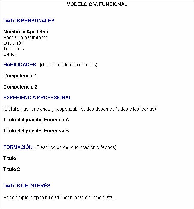 los datos se organizan según las actividades relacionadas con el puesto; es decir, primero los datos más relevantes para el puesto y después otras informaciones.